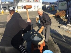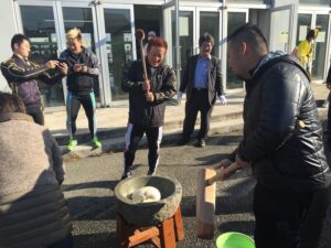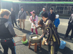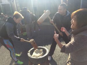 さて、参加者も全員そろったところで急ピッチでお餅をついていきます。