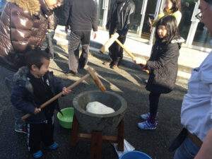 遊びに来てくれた子供たちも餅つきに参加(^o^)