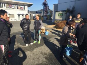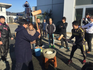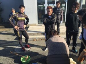 川口選手も若手選手に負けじと餅つき開始(^^)さすがに競輪選手はパワーが違います。