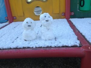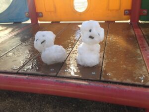 ポンスターランドの遊具にも雪。