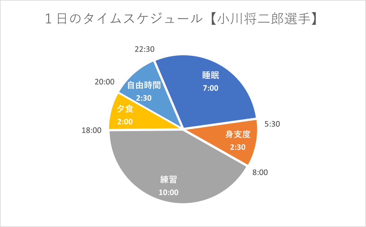 小川選手は早寝早起き。練習日は朝5時30分に起きて、ストイックに練習に取り組んでいるそうです。