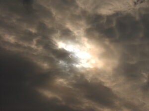 朝7時にはもうずいぶんと欠けてきた太陽。周りもだんだん暗くなってきました。