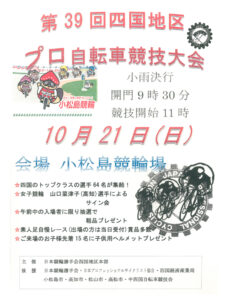 本日ご紹介するのは、10月21日(日)に実施されます、日本競輪選手会四国地区本部主催によります、『第39回 四国地区プロ自転車競技大会』です!!