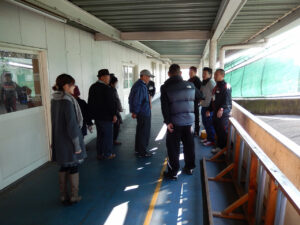 さらに進んで検車場。ここから湊選手、米澤選手、滝山選手も合流。