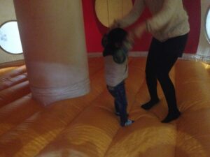 最初は怖がってたちびっ子も、おかあさんが一緒なら安心!!すぐに慣れてピョンピョン跳んでました(*^v^)