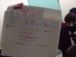 場内を宣伝してくれたこまポン。一緒に米崎選手もお手伝いしてくれました!!