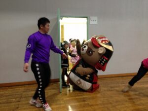 小松島けいりんに初めて来たこまポン。さっそくキッズダンスの宣伝に出かけてくれました(^^)v