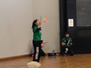 ここで、斉藤選手、吉岡選手がジャグリングに飛び入り参加!!(ノ゚ο゚)ノ
