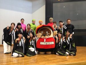 四国大学よさこい踊りクラブの皆様。ポンスターと一緒に記念撮影!!