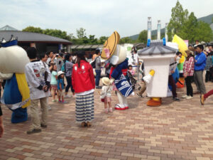 ほかのゆるキャラもいっしょにお出迎え。