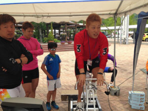 ここで登場したのが原田選手。キックバイクでは負けてしまったけど、ここはプロの意地を見せてもらいます!!