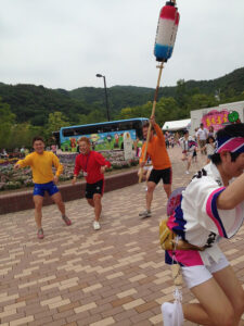 原田選手もがんばって走りますが、子供たちにはなかなか勝てません(汗)