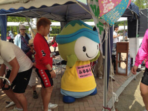 レースの後にふるるんと記念撮影。ふるるんは軽快にスキップしながら特設ステージへ向かっていきました。