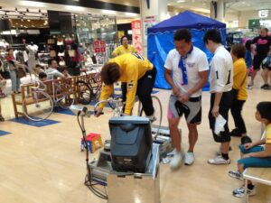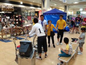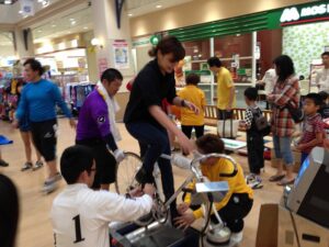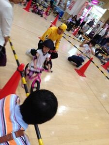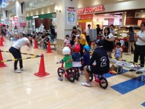 キックバイクもずーっと盛況で、二階席からもお客様が見物。沢山のお客様、ちびっ子に囲まれて楽しい一日でした。
