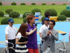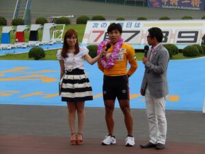原田選手のインタビュー。山口さんに質問されてちょっと緊張ぎみかなσ(^_^;)