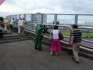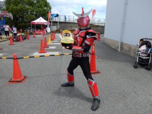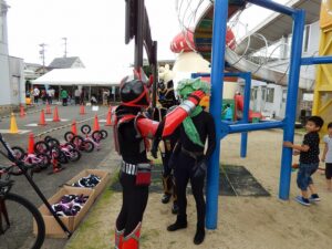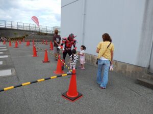 場内のちびっ子に、「悪い奴を見なかった?見たらすぐに連絡を!!」と防犯!?活動を行っていました(=´▽`=)
