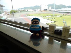 こちらは、バックストレッチ側から撮影。新聞記者さんがいるプレスルームに来ました。