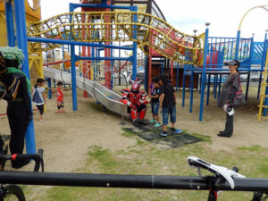 一緒にすべり台をしたり、トンネルを通ったり、子供たちよりもブレイクたちの方が楽しんでいたかも!?