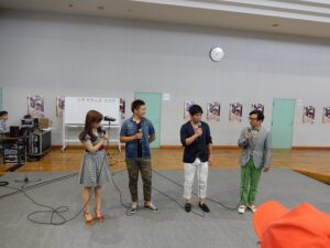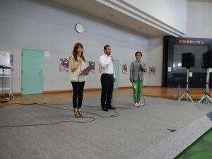 次は、選手トークショー。村上選手、藤木選手が登場。山口さんと軽快なトークでお客様も大盛り上がり!!