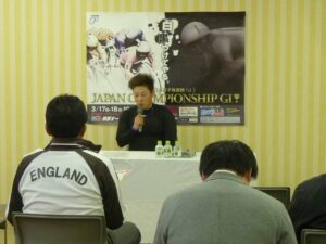 記者会見の様子。ちょっと緊張ぎみかな?