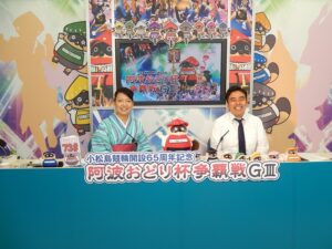 本日から4日間、小松島競輪の実況をお送りするスタジオです。もちろん、司会進行は服部佳代子さん(^^)