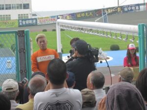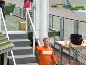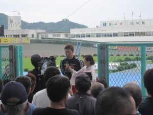 インタビューを受ける村上選手。村上選手もファンがたくさん!!熱い走りでお客様を魅了してくれました。