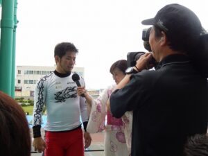 インタビューを受ける原田選手も嬉しそう。お客様からも温かい声援が送られていました(^^)