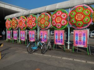 そんな小川選手を応援する花輪が正門にたくさん並んでいました。